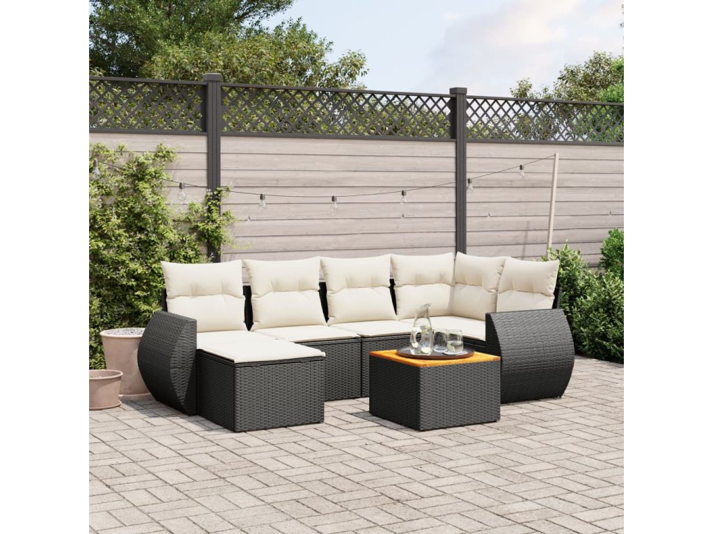 7dílná zahradní sedací souprava s poduškami černá polyratan 3225104