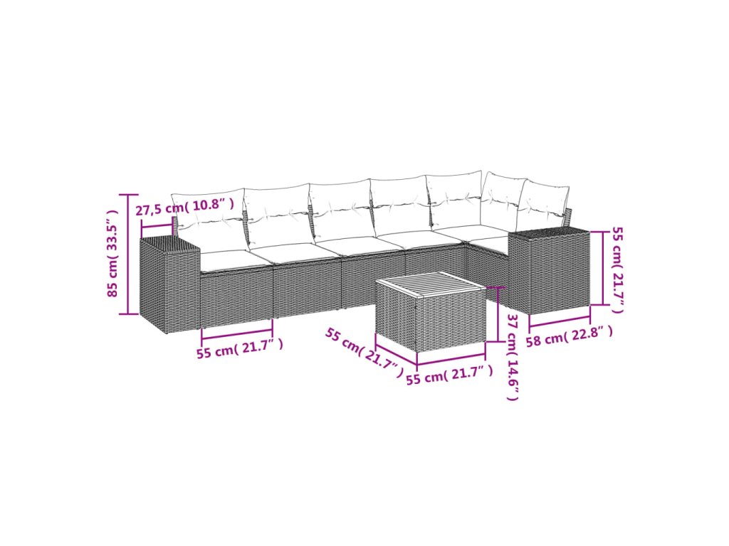 Tato zahradní sedací souprava je dokonalým doplňkem vaší zahrady, terasy nebo dvorku a poskytne vám pohodlné a příjemné místo, kde si můžete povídat s rodinou a přáteli nebo jen tak odpočívat a užívat si pobyt venku.