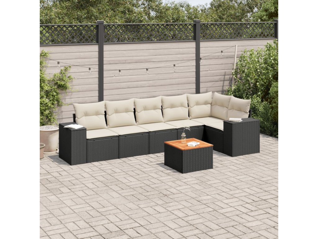 7dílná zahradní sedací souprava s poduškami černá polyratan 3225454