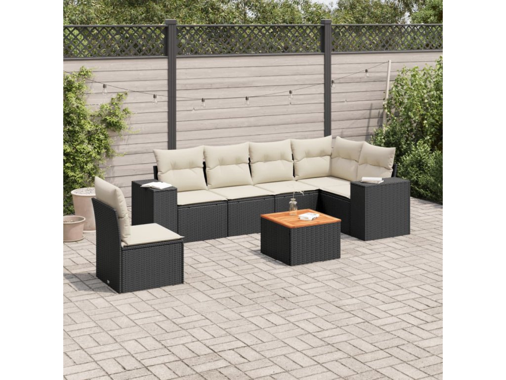 7dílná zahradní sedací souprava s poduškami černá polyratan 3225468