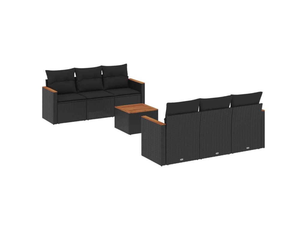 7dílná zahradní sedací souprava s poduškami černá polyratan 3225789