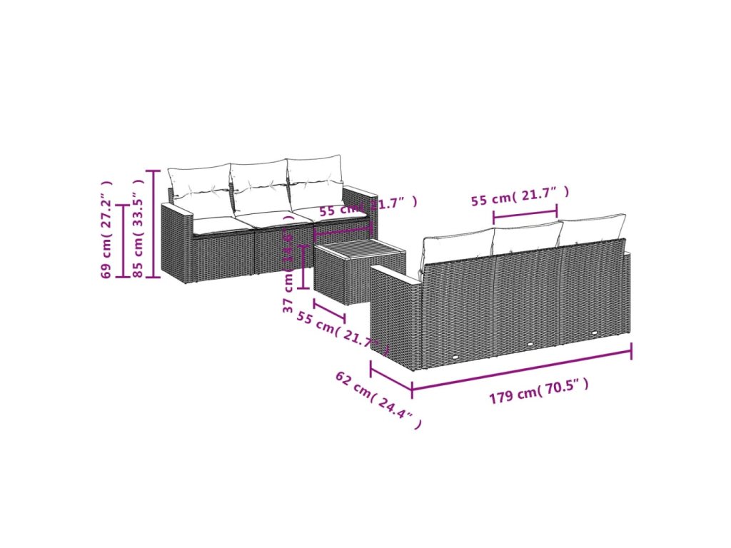 Tato zahradní sedací souprava je dokonalým doplňkem vaší zahrady, terasy nebo dvorku a poskytne vám pohodlné a příjemné místo, kde si můžete povídat s rodinou a přáteli nebo jen tak odpočívat a užívat si pobyt venku.