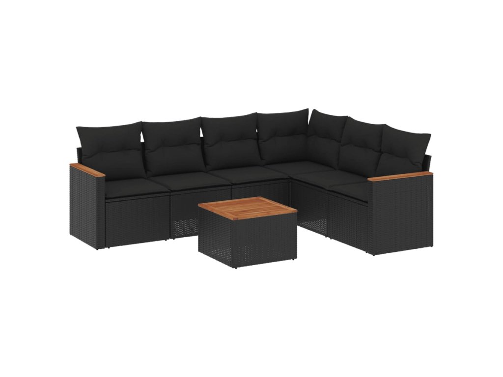 7dílná zahradní sedací souprava s poduškami černá polyratan 3226006