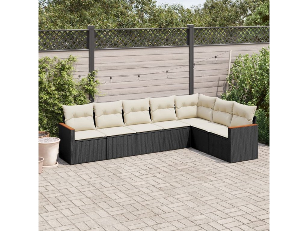 7dílná zahradní sedací souprava s poduškami černá polyratan 3226028
