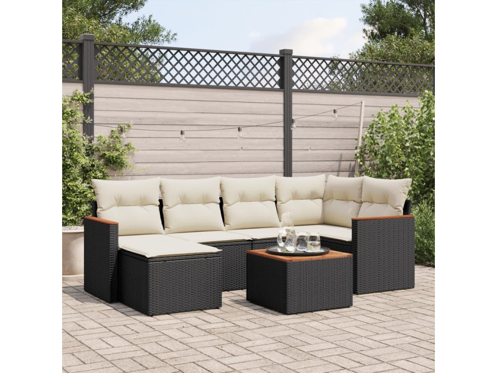 7dílná zahradní sedací souprava s poduškami černá polyratan 3226182