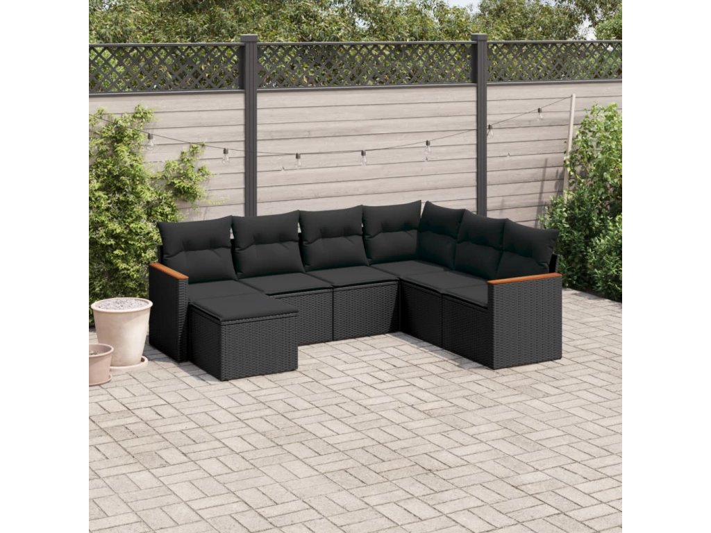7dílná zahradní sedací souprava s poduškami černá polyratan 3226202