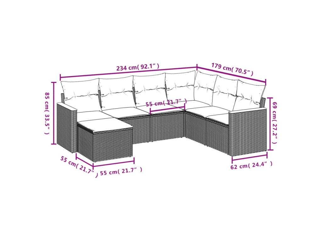 7dílná zahradní sedací souprava s poduškami černá polyratan 3226203
