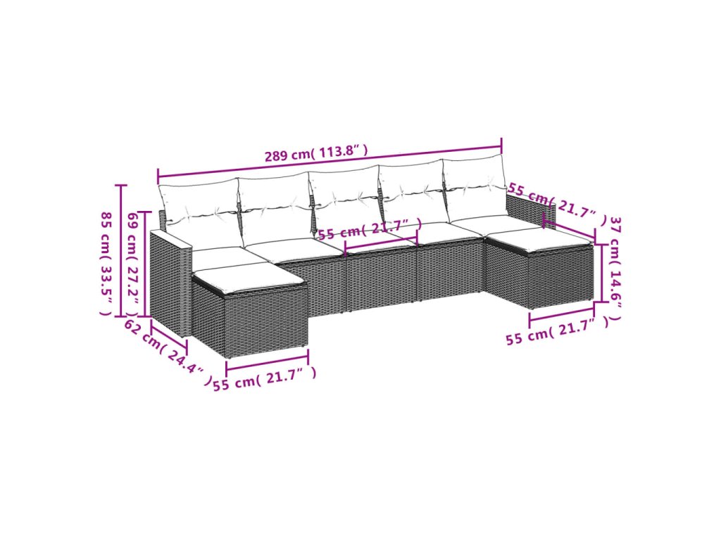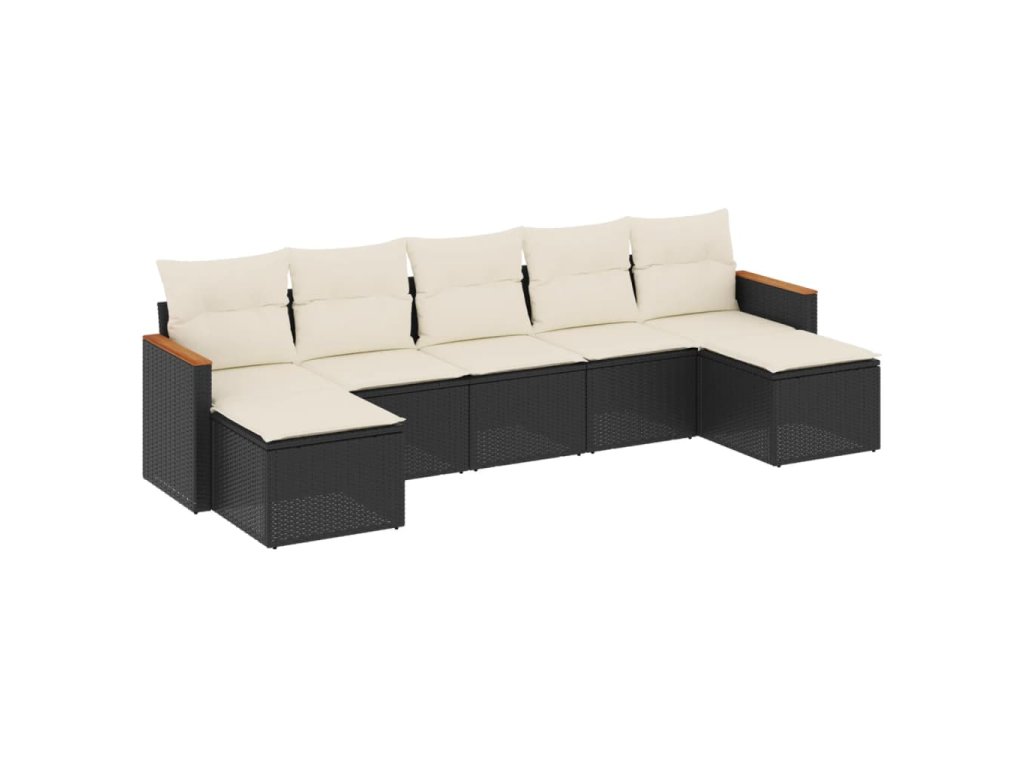 7dílná zahradní sedací souprava s poduškami černá polyratan 3226231
