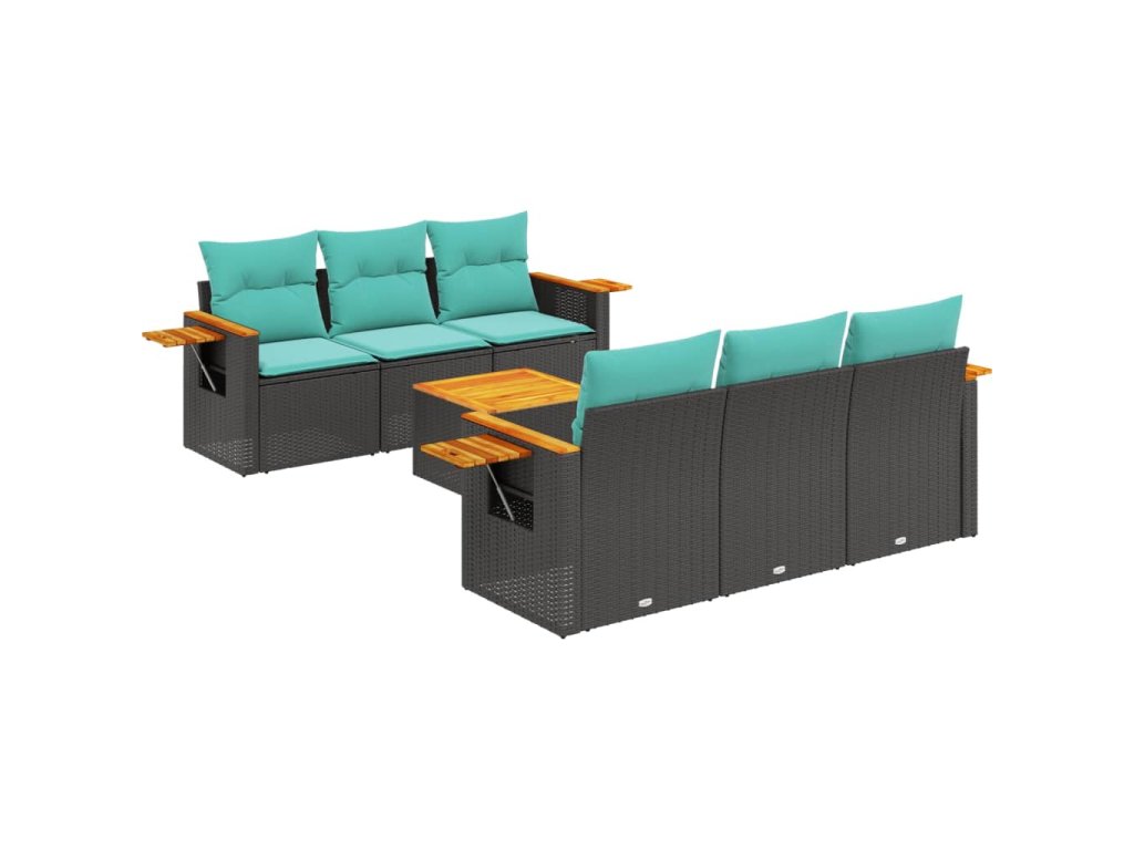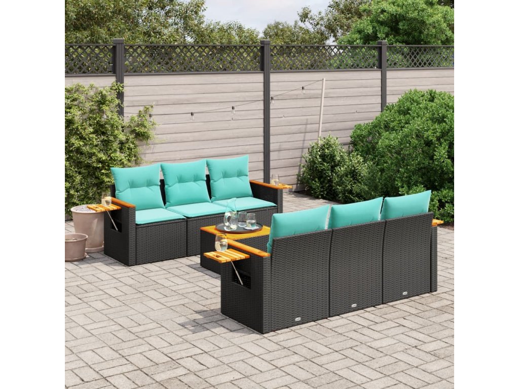 7dílná zahradní sedací souprava s poduškami černá polyratan 3226631