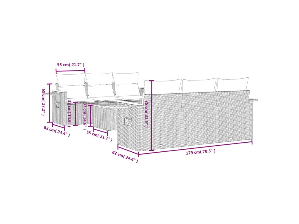 Tato zahradní sedací souprava je dokonalým doplňkem vaší zahrady, terasy nebo dvorku a poskytne vám pohodlné a příjemné místo, kde si můžete povídat s rodinou a přáteli nebo jen tak odpočívat a užívat si pobyt venku.