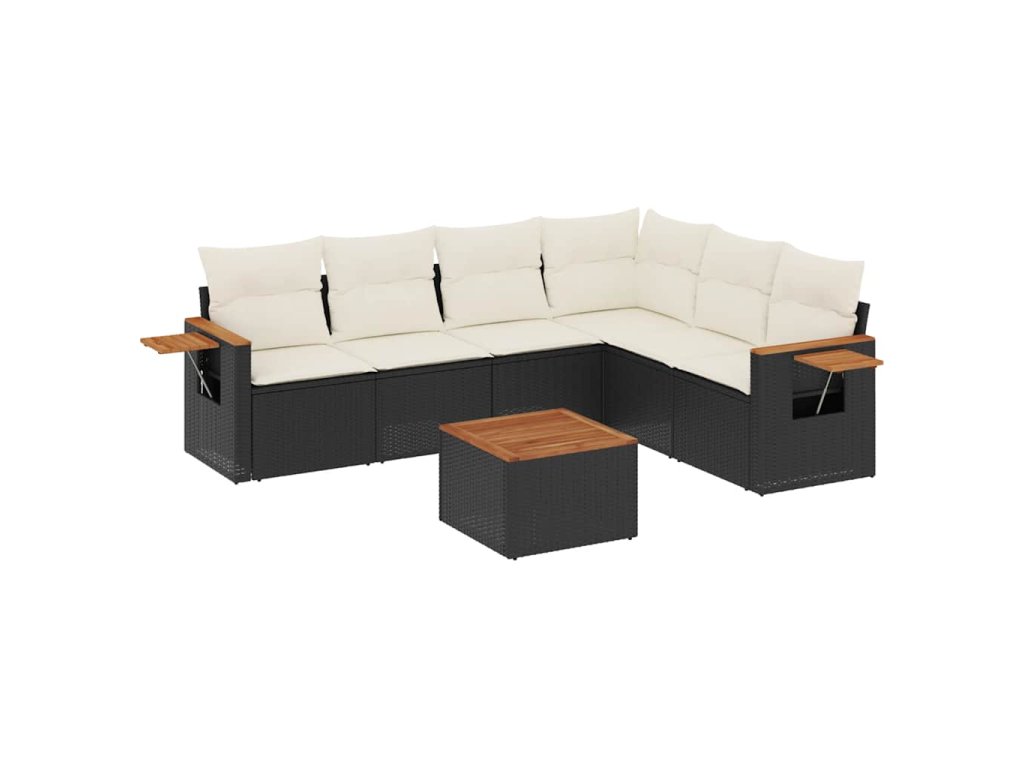 7dílná zahradní sedací souprava s poduškami černá polyratan 3226847