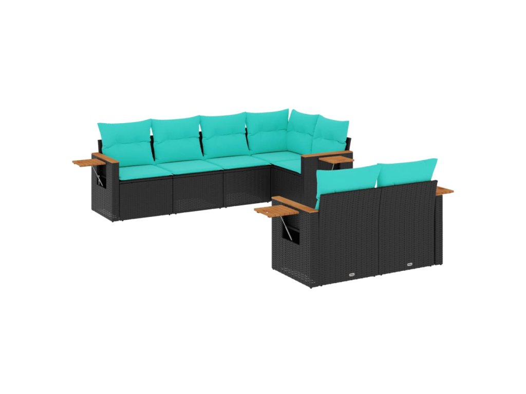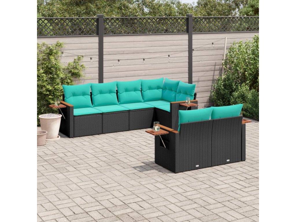 7dílná zahradní sedací souprava s poduškami černá polyratan 3226981