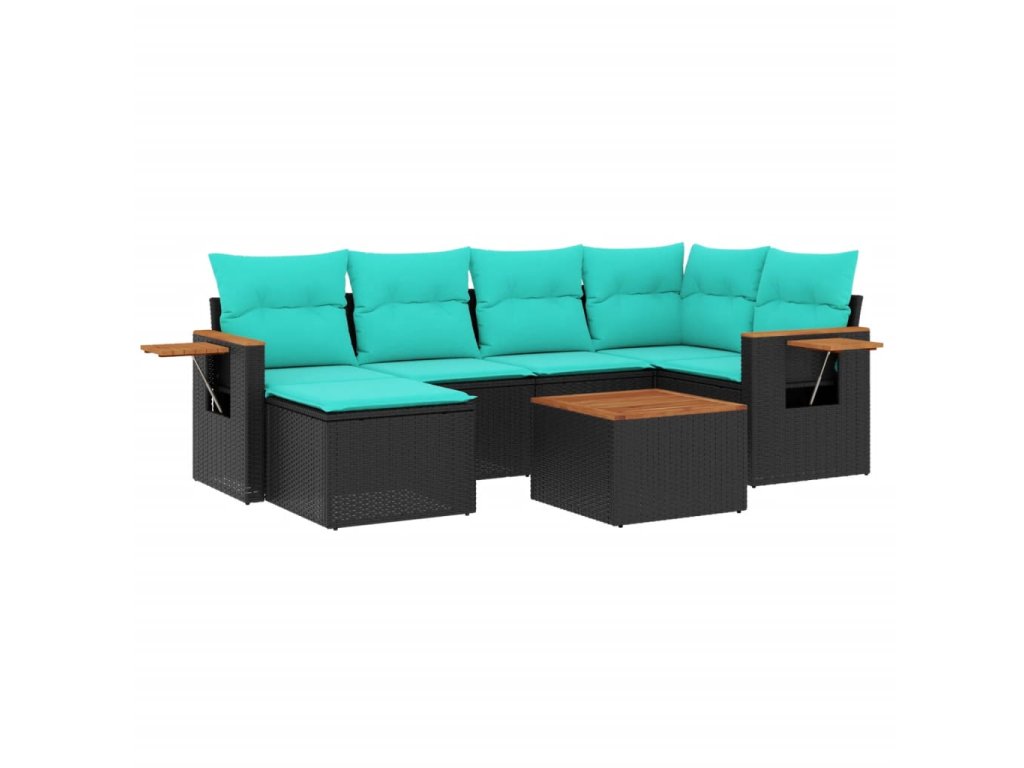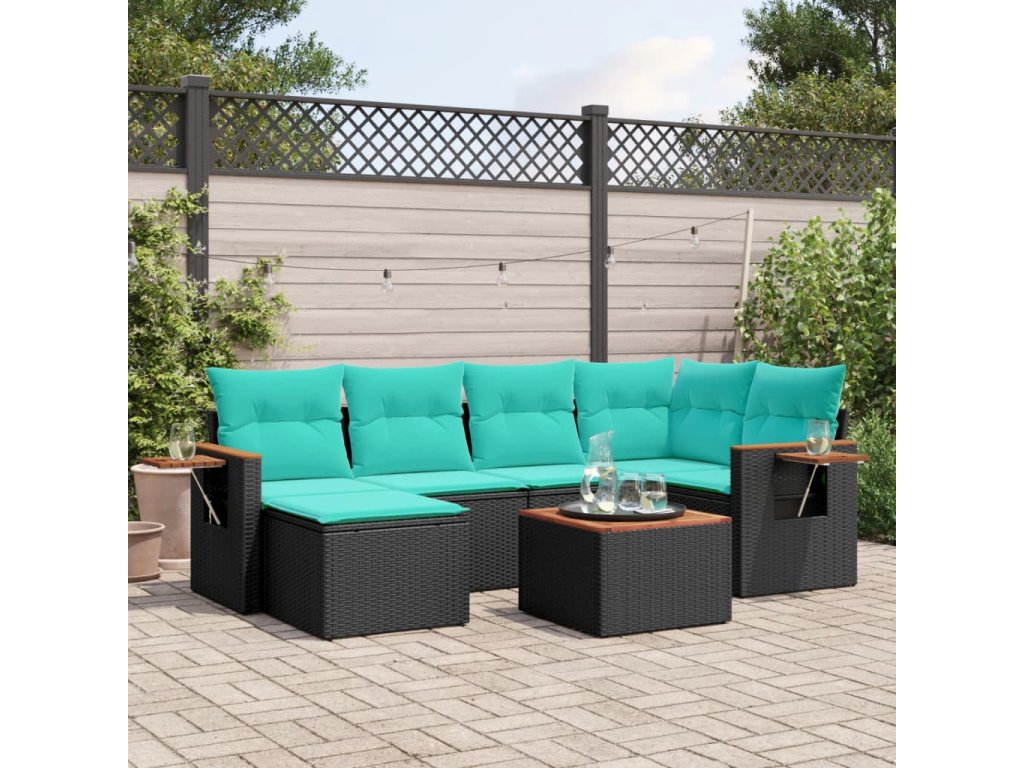 7dílná zahradní sedací souprava s poduškami černá polyratan 3227023