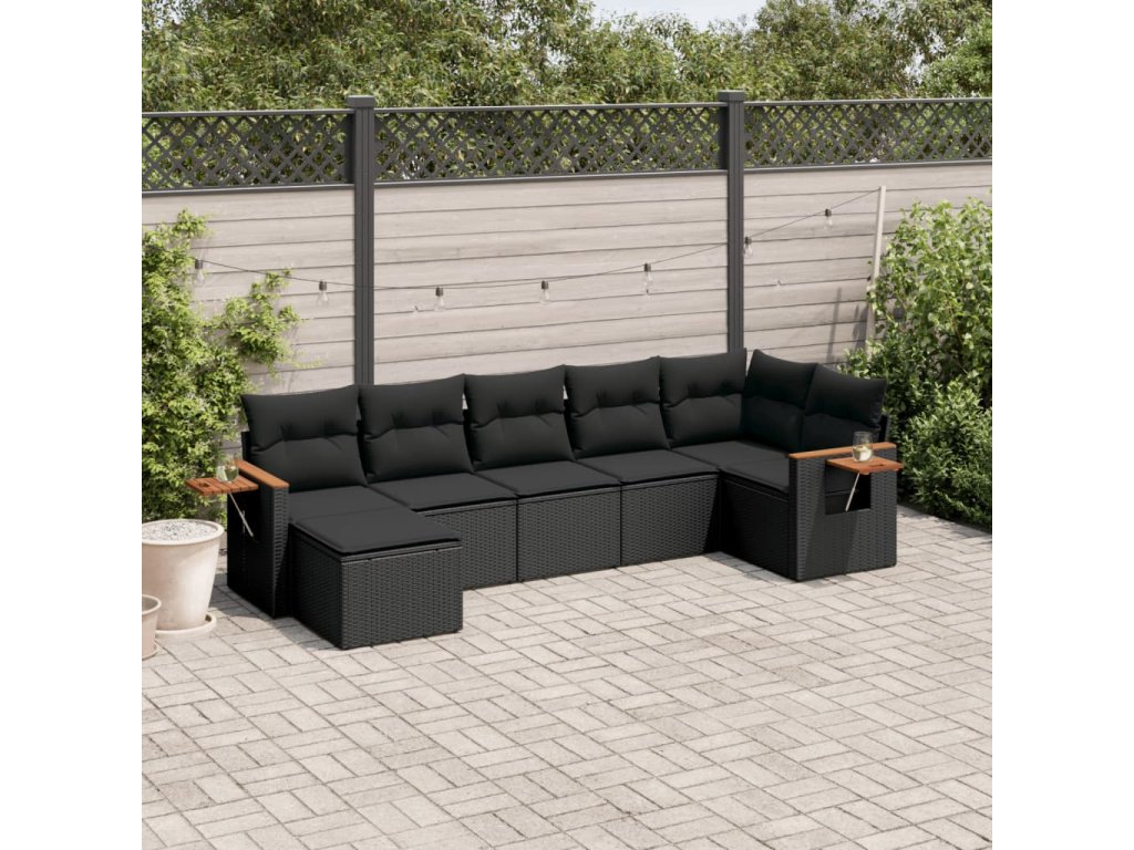 7dílná zahradní sedací souprava s poduškami černá polyratan 3227028