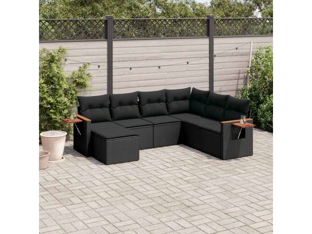 7dílná zahradní sedací souprava s poduškami černá polyratan 3227042