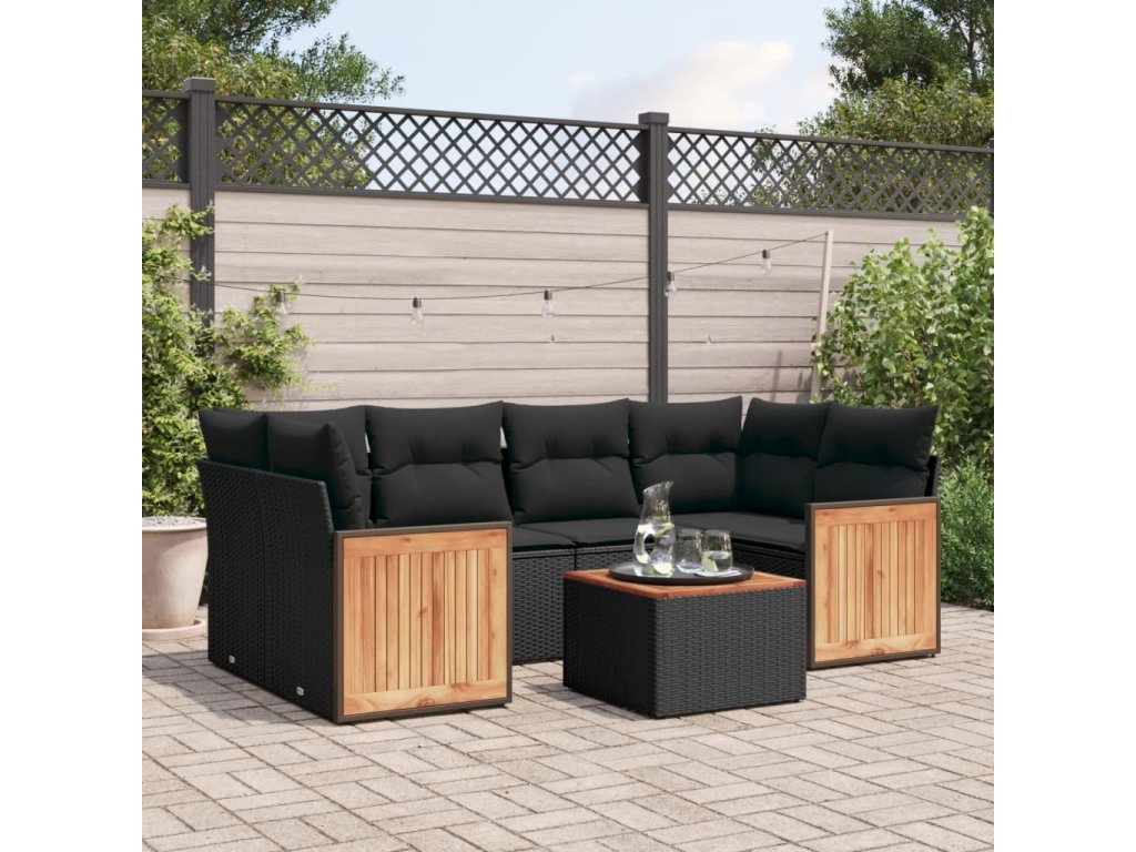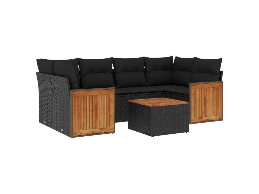 7dílná zahradní sedací souprava s poduškami černá polyratan 3227476