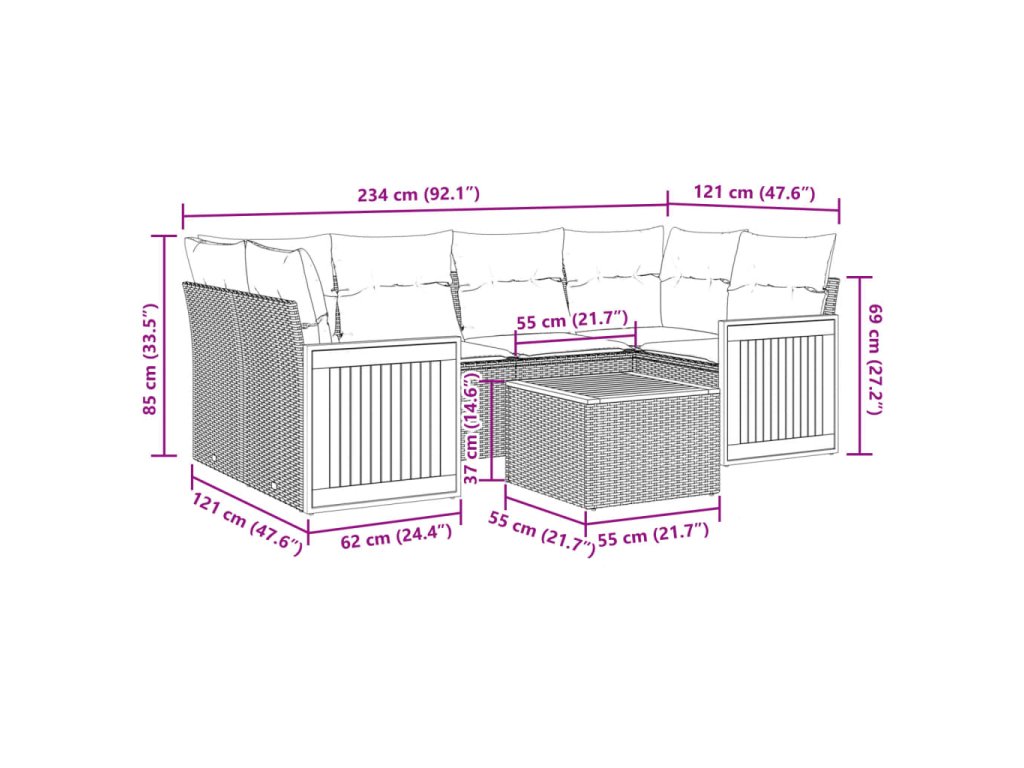 Tato zahradní sedací souprava je dokonalým doplňkem vaší zahrady, terasy nebo dvorku a poskytne vám pohodlné a příjemné místo, kde si můžete povídat s rodinou a přáteli nebo jen tak odpočívat a užívat si pobyt venku.