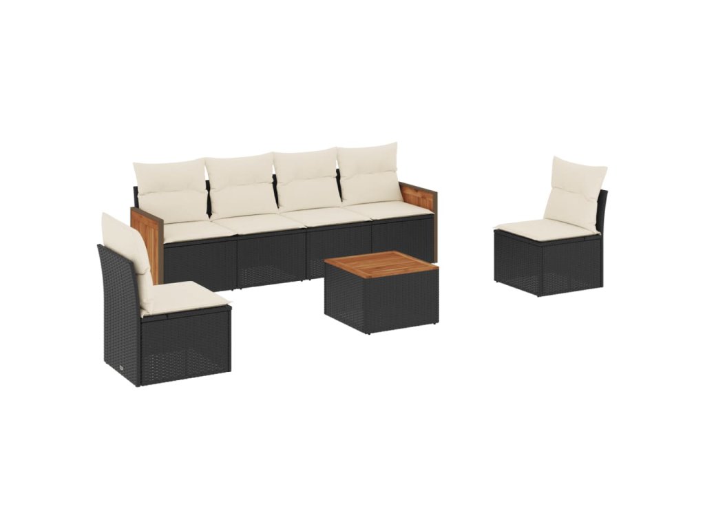 7dílná zahradní sedací souprava s poduškami černá polyratan 3227547