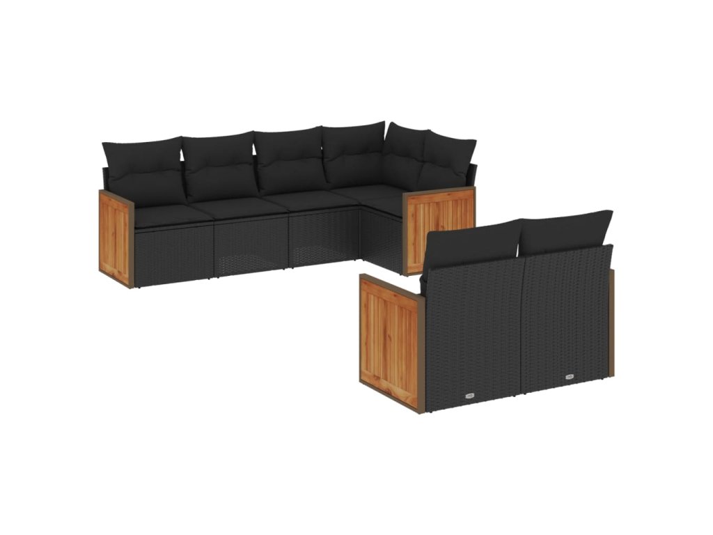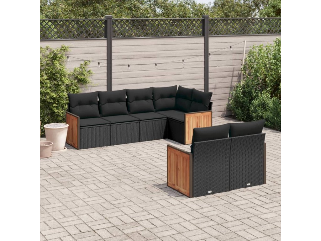 7dílná zahradní sedací souprava s poduškami černá polyratan 3227819