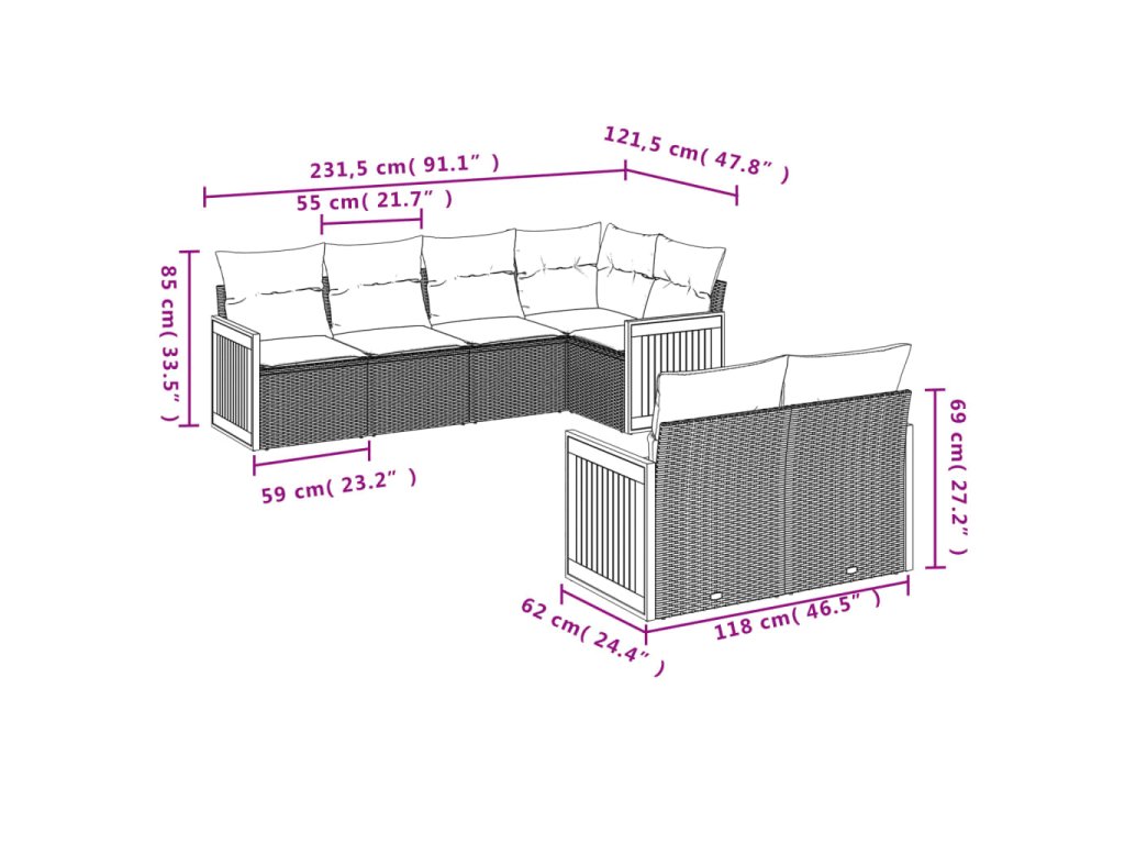 Tato zahradní sedací souprava je dokonalým doplňkem vaší zahrady, terasy nebo dvorku a poskytne vám pohodlné a příjemné místo, kde si můžete povídat s rodinou a přáteli nebo jen tak odpočívat a užívat si pobyt venku.