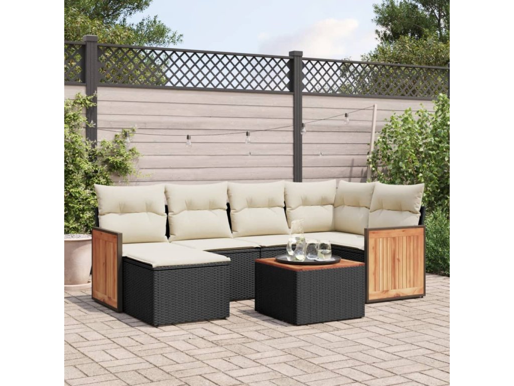 7dílná zahradní sedací souprava s poduškami černá polyratan 3227862