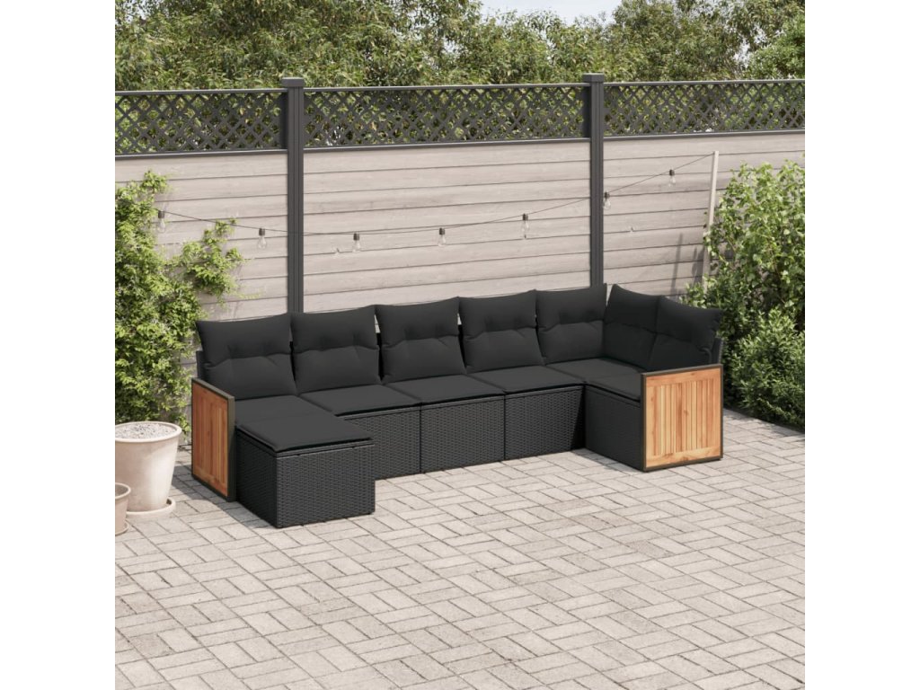 7dílná zahradní sedací souprava s poduškami černá polyratan 3227868