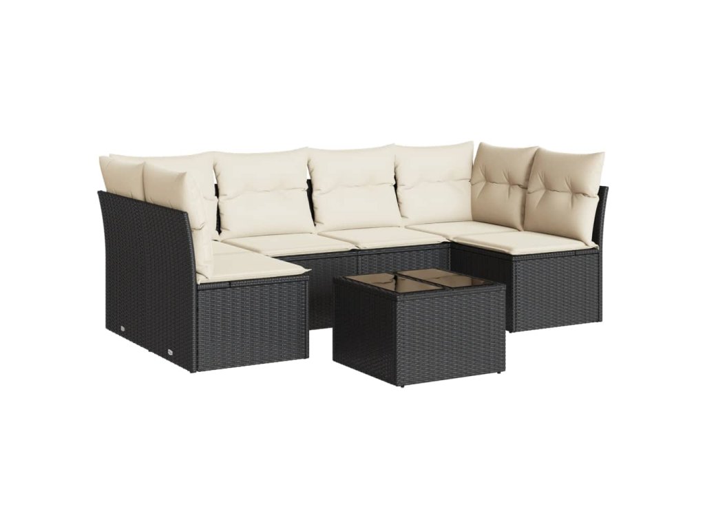 7dílná zahradní sedací souprava s poduškami černá polyratan 3249235
