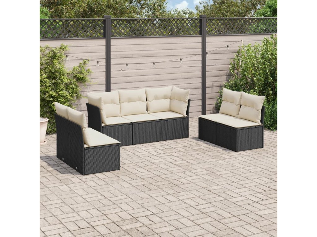 7dílná zahradní sedací souprava s poduškami černá polyratan 3249245