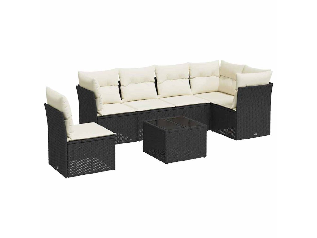 7dílná zahradní sedací souprava s poduškami černá polyratan 3249545