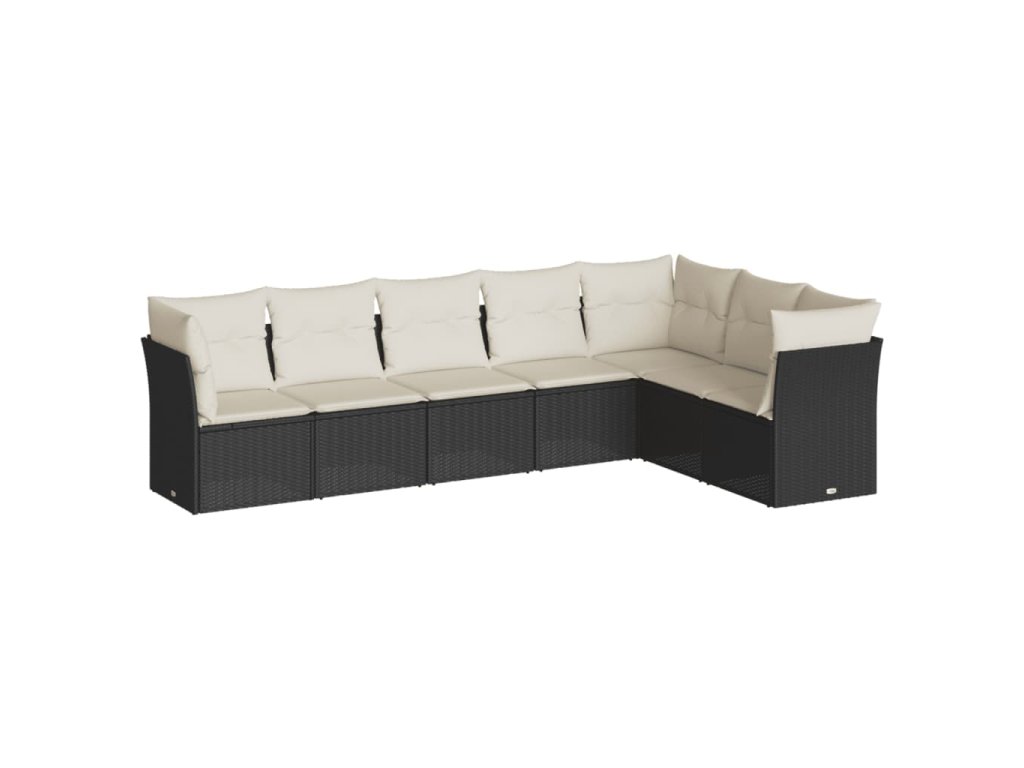 7dílná zahradní sedací souprava s poduškami černá polyratan 3249575