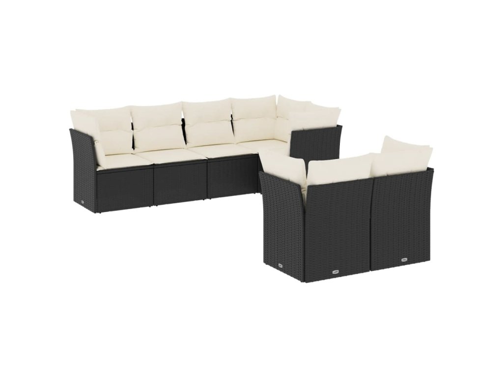 7dílná zahradní sedací souprava s poduškami černá polyratan 3249735