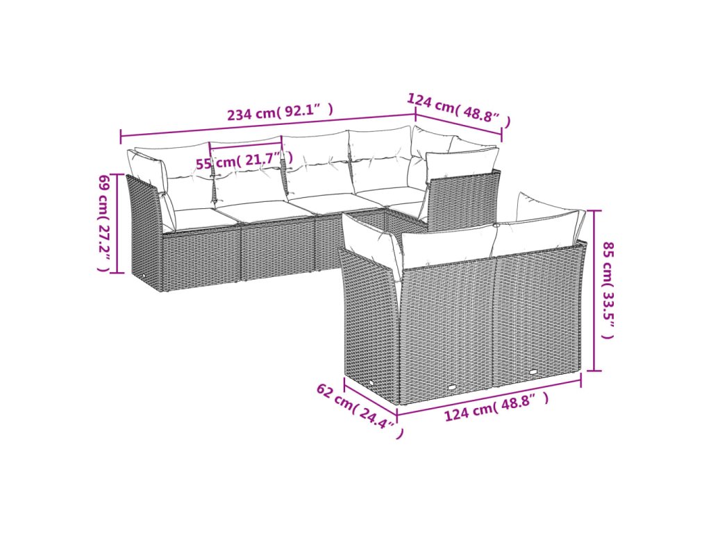 Tato zahradní sedací souprava je dokonalým doplňkem vaší zahrady, terasy nebo dvorku a poskytne vám pohodlné a příjemné místo, kde si můžete povídat s rodinou a přáteli nebo jen tak odpočívat a užívat si pobyt venku.