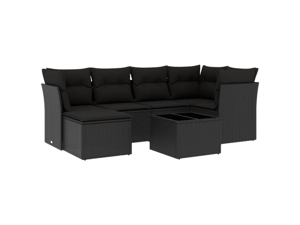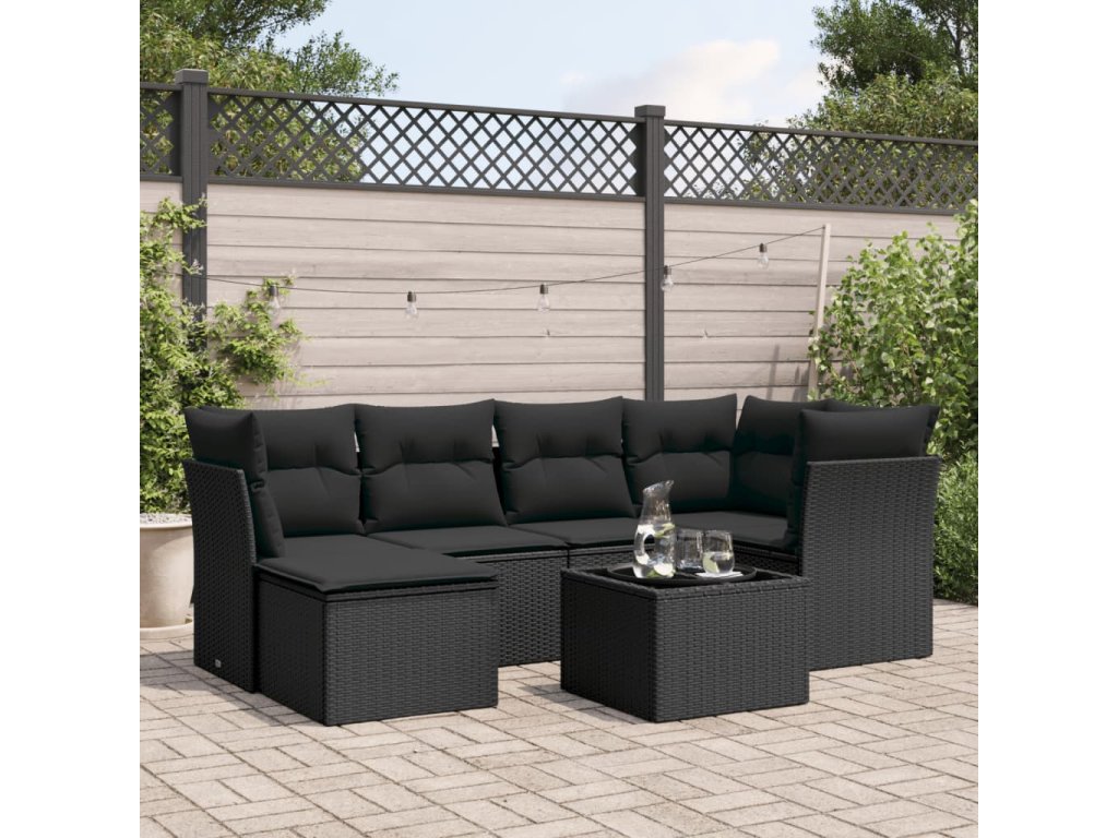 7dílná zahradní sedací souprava s poduškami černá polyratan 3249794