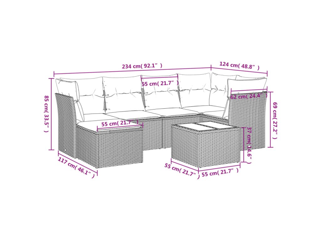 Tato zahradní sedací souprava je dokonalým doplňkem vaší zahrady, terasy nebo dvorku a poskytne vám pohodlné a příjemné místo, kde si můžete povídat s rodinou a přáteli nebo jen tak odpočívat a užívat si pobyt venku.