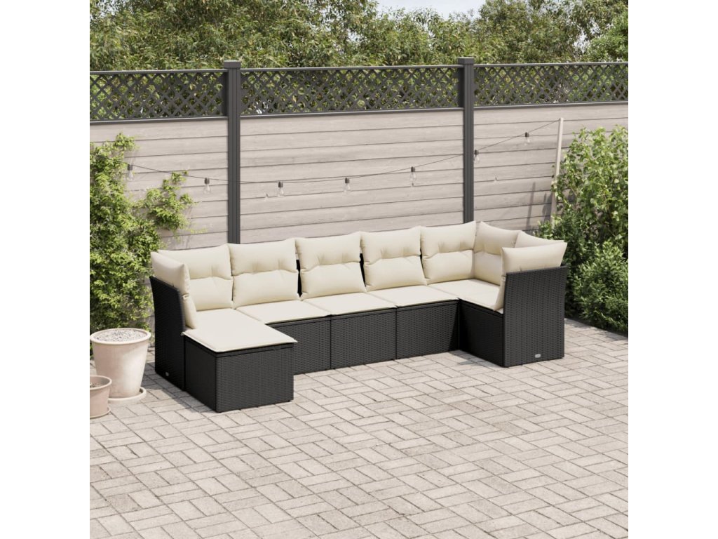 7dílná zahradní sedací souprava s poduškami černá polyratan 3249805