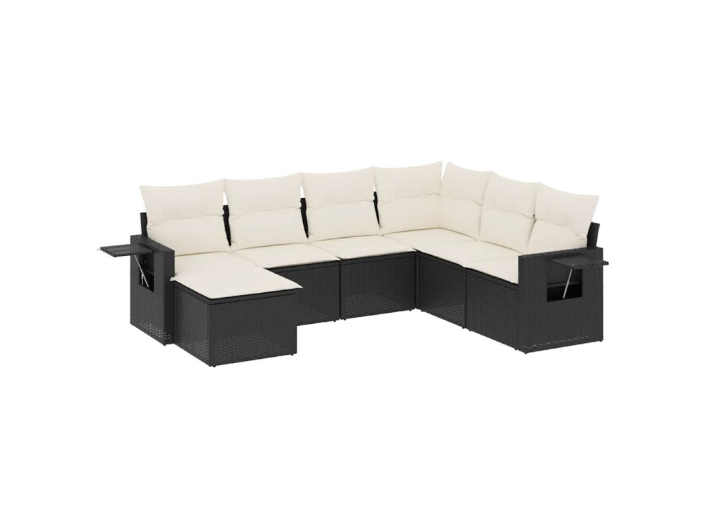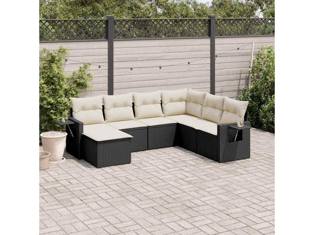 7dílná zahradní sedací souprava s poduškami černá polyratan 3252833