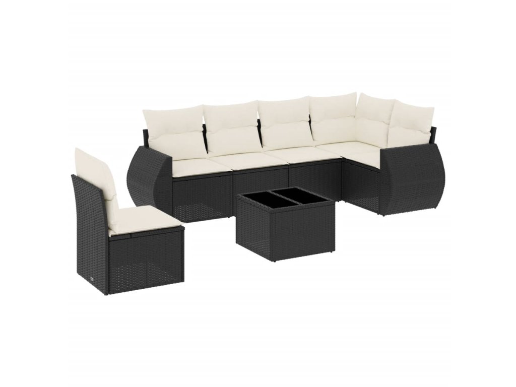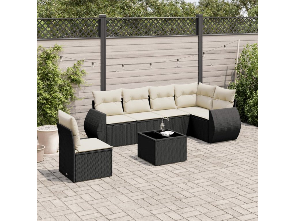 7dílná zahradní sedací souprava s poduškami černá polyratan 3253773