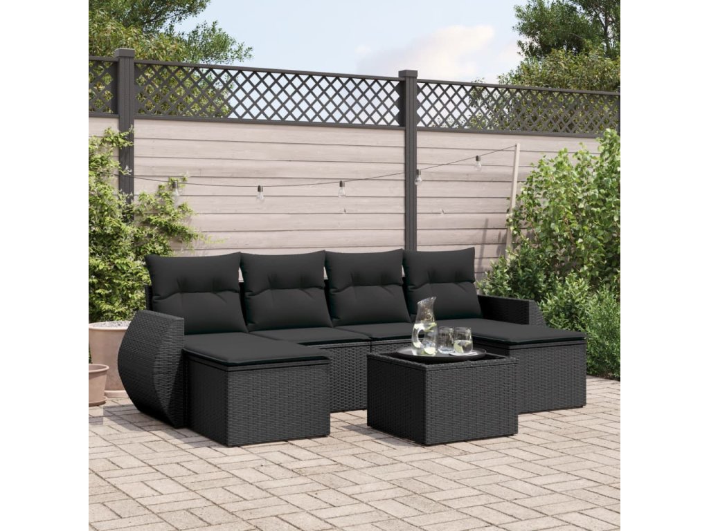 7dílná zahradní sedací souprava s poduškami černá polyratan 3254062