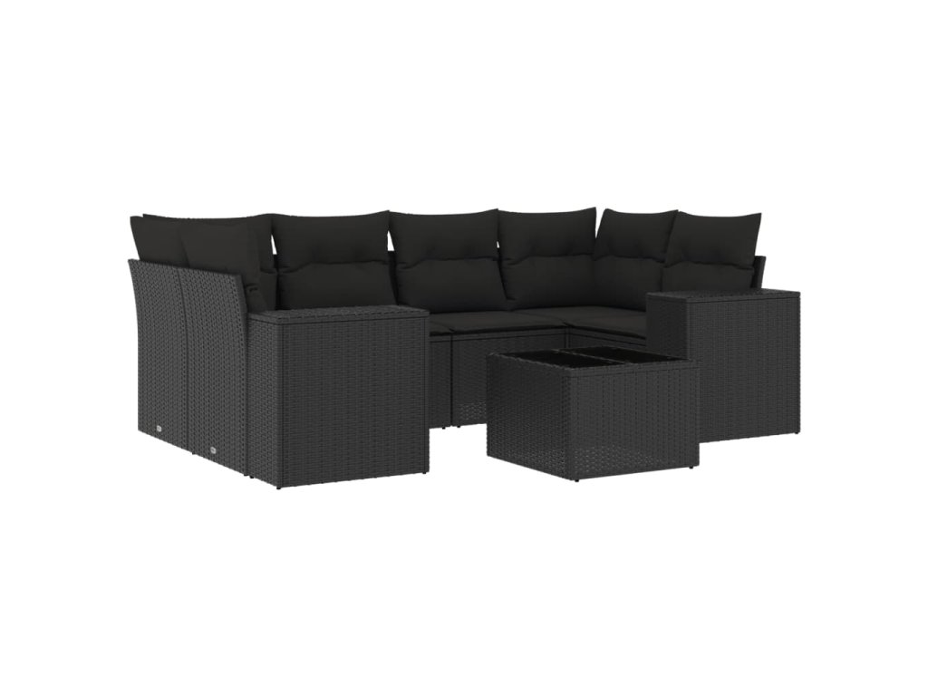 7dílná zahradní sedací souprava s poduškami černá polyratan 3254652
