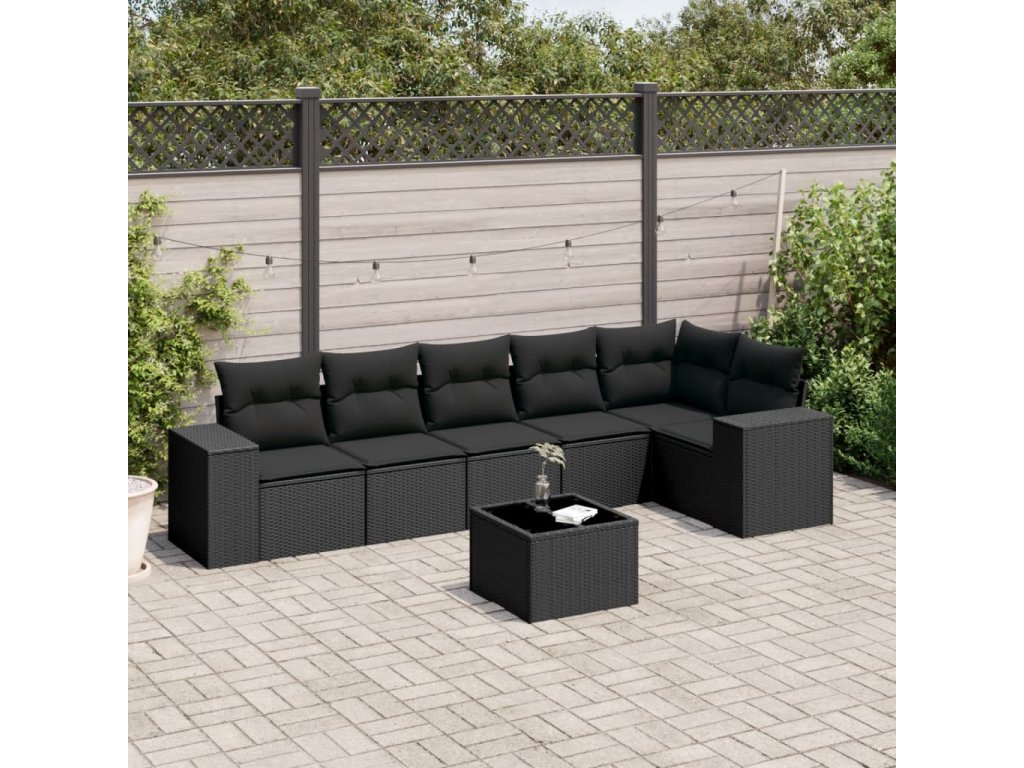7dílná zahradní sedací souprava s poduškami černá polyratan 3254932