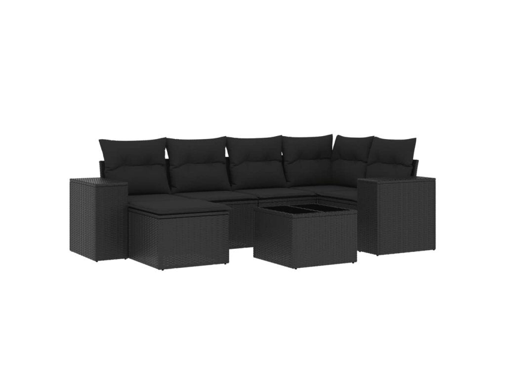 7dílná zahradní sedací souprava s poduškami černá polyratan 3255202