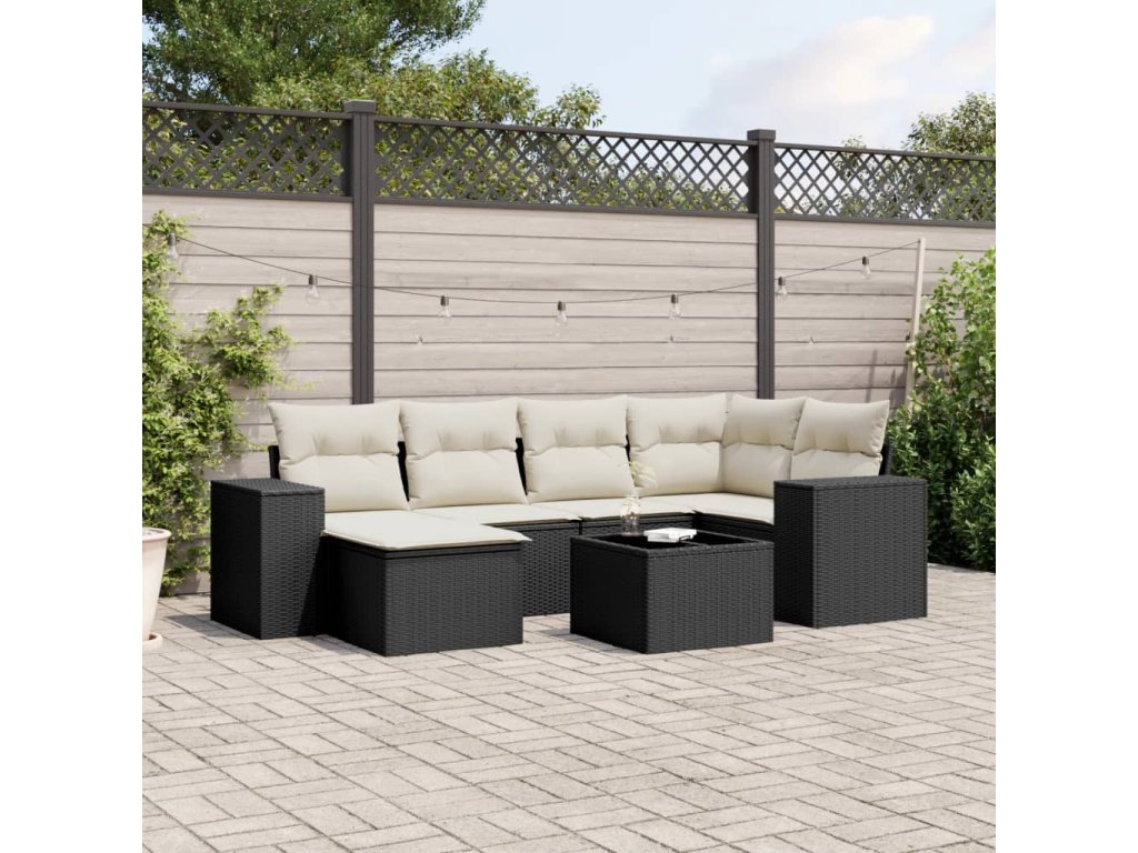 7dílná zahradní sedací souprava s poduškami černá polyratan 3255203