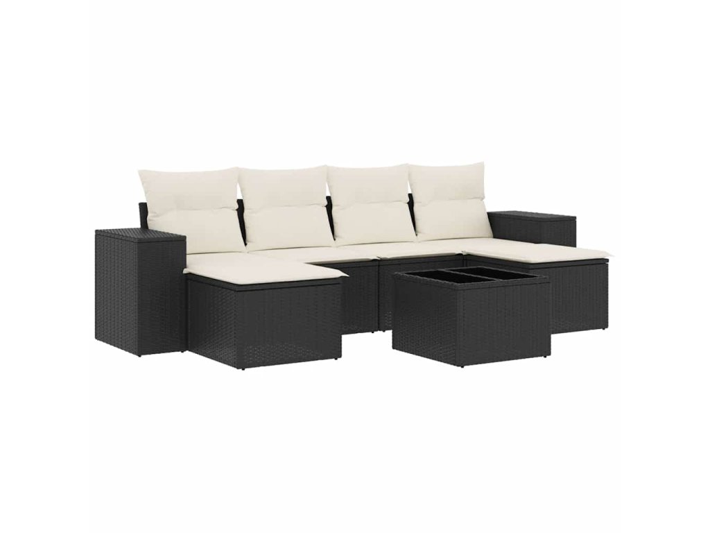 7dílná zahradní sedací souprava s poduškami černá polyratan 3255263