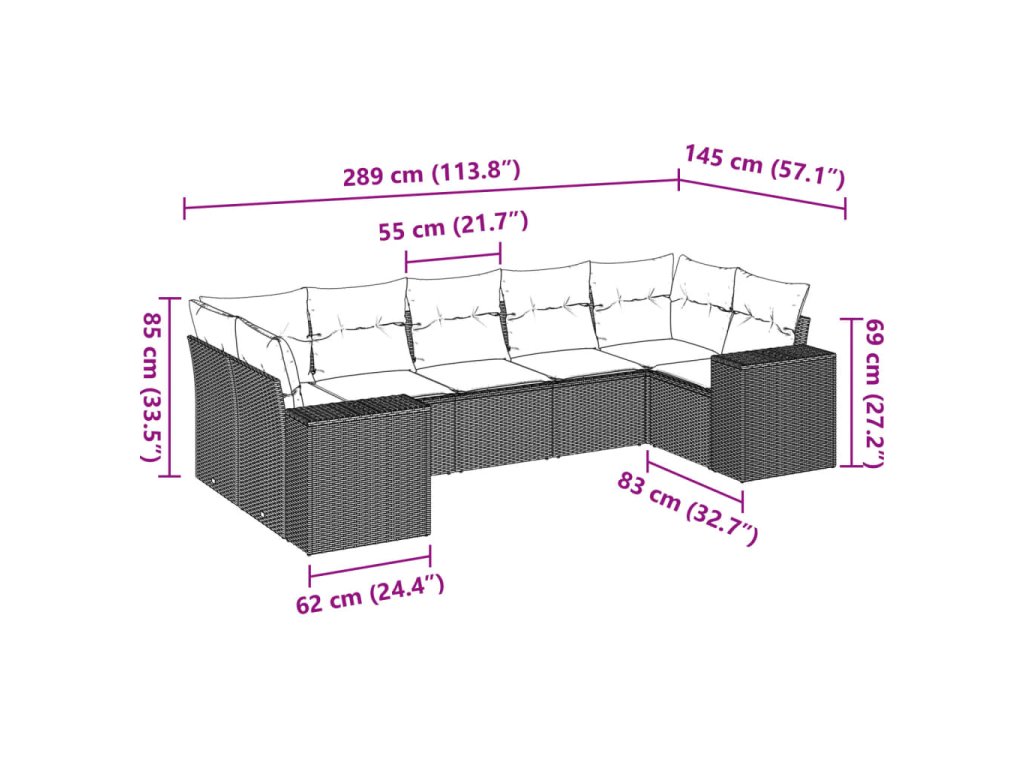 7dílná zahradní sedací souprava s poduškami černá polyratan 3255323