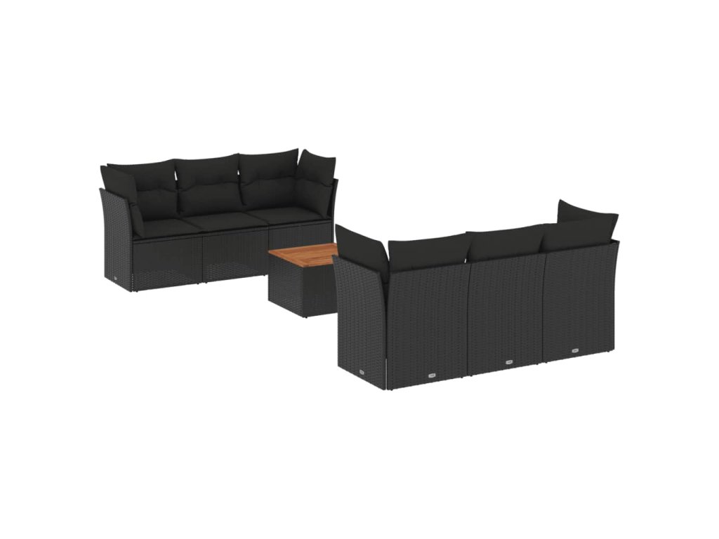7dílná zahradní sedací souprava s poduškami černá polyratan 3255817