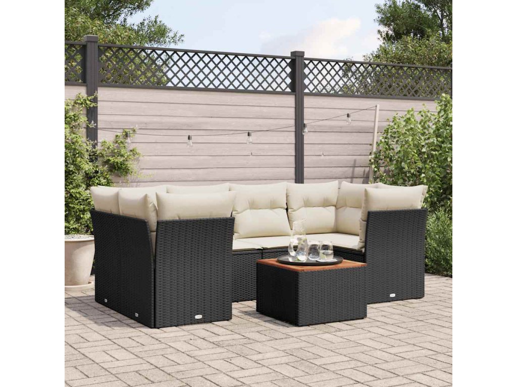 7dílná zahradní sedací souprava s poduškami černá polyratan 3255825