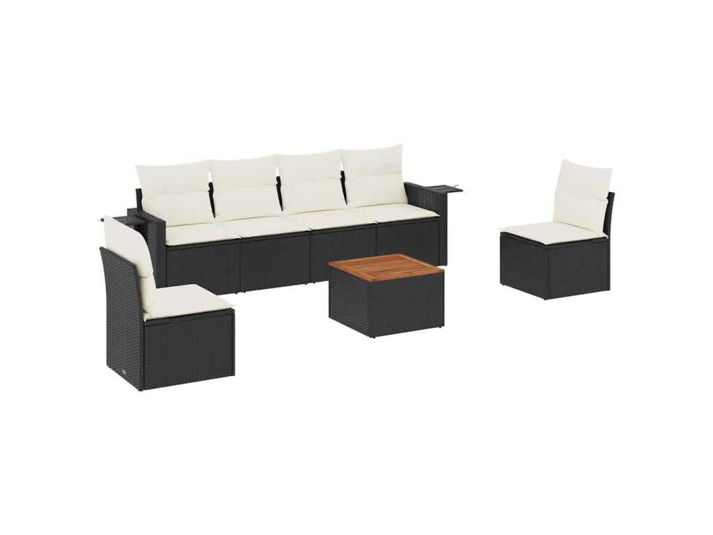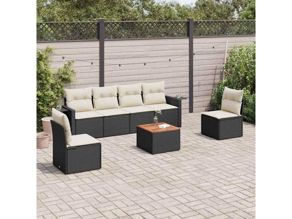 7dílná zahradní sedací souprava s poduškami černá polyratan 3256840