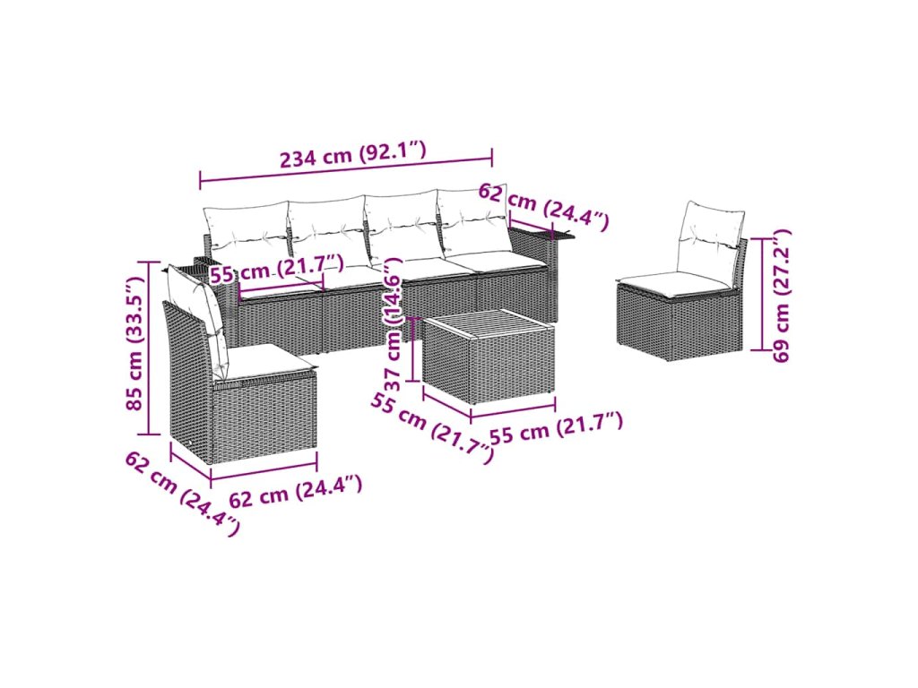 Tato zahradní sedací souprava je dokonalým doplňkem vaší zahrady, terasy nebo dvorku a poskytne vám pohodlné a příjemné místo, kde si můžete povídat s rodinou a přáteli nebo jen tak odpočívat a užívat si pobyt venku.