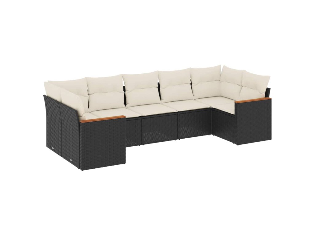 7dílná zahradní sedací souprava s poduškami černá polyratan 3258668