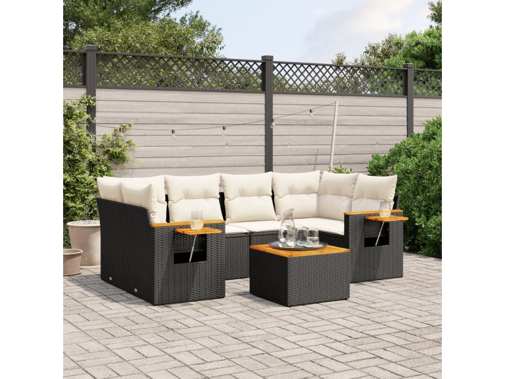 7dílná zahradní sedací souprava s poduškami černá polyratan 3259039